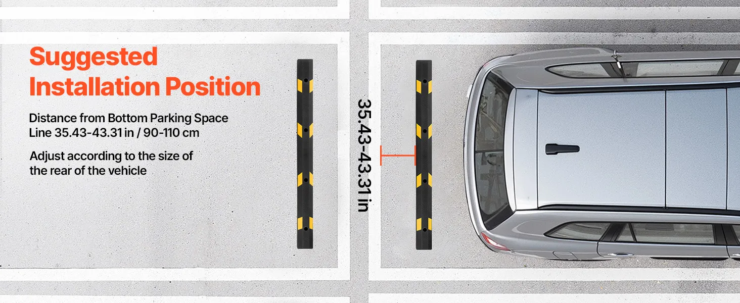 Recommended to install 35.43-43.31 in/90-110 cm from the bottom parking line. Our parking stop can be adjusted according to the size of the rear of the vehicle. Precise installation avoids the vehicle hitting the wall when reversing.