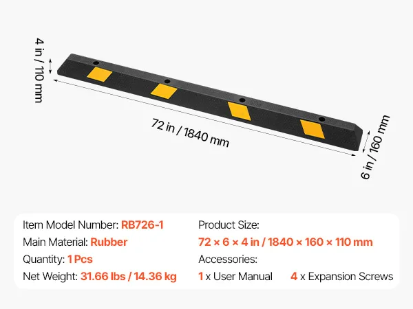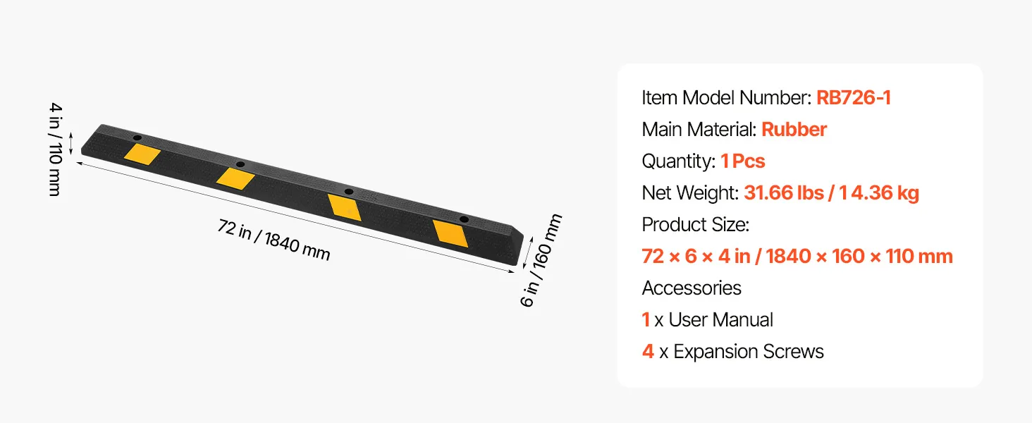 High Hardness Material: Made of premium rubber, the parking curb provides higher hardness, stronger load capacity, non-slip property, and wear resistance than ordinary materials. It has no deformation after long-term use
