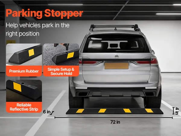 Made of premium rubber material with an adhesive design, our parking stopper is easy to install. Equipped with reflective strips, it improves nighttime parking confidence.