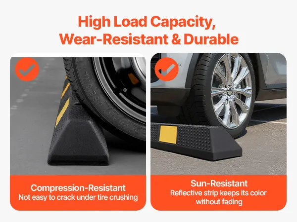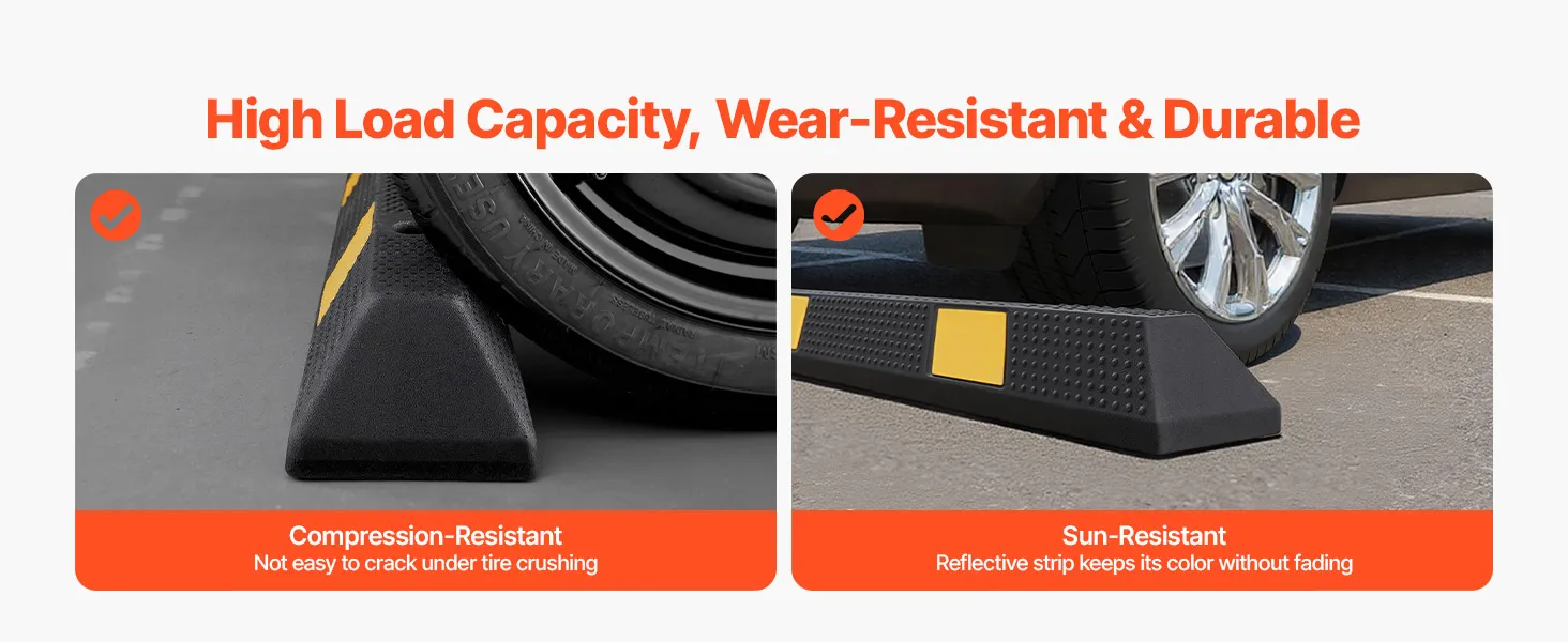 Built with a strong load-bearing capacity, the parking curb can withstand tire crushing without cracking. Sun-resistant design keeps the color of reflective strips bright over time.
