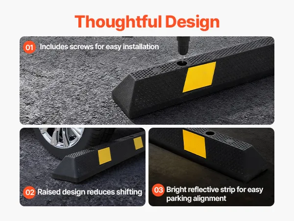 Easy Installation: This parking block includes a screw package and pre-set holes for easy installation, requiring no complicated tools or extra help. One person can quickly finish the installation