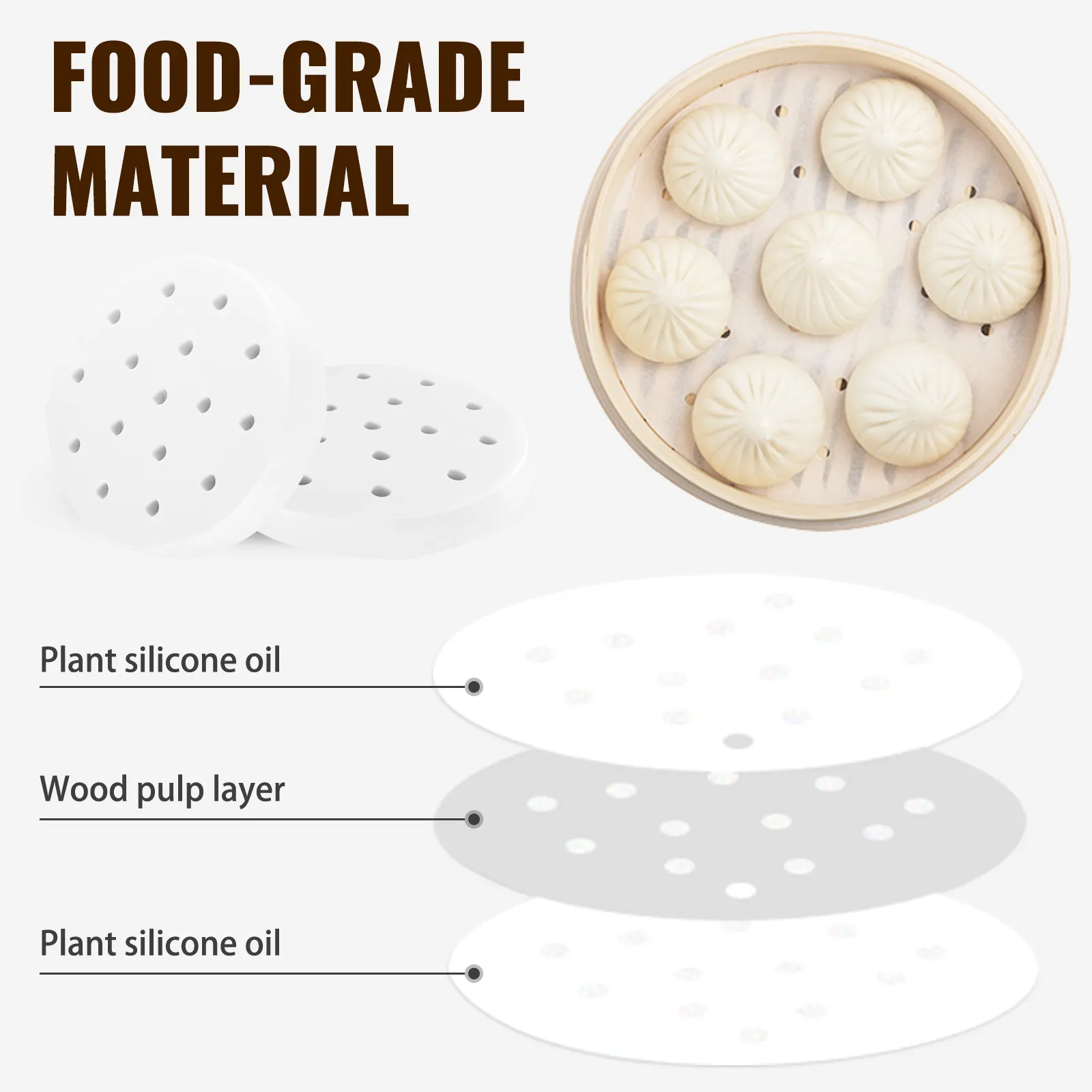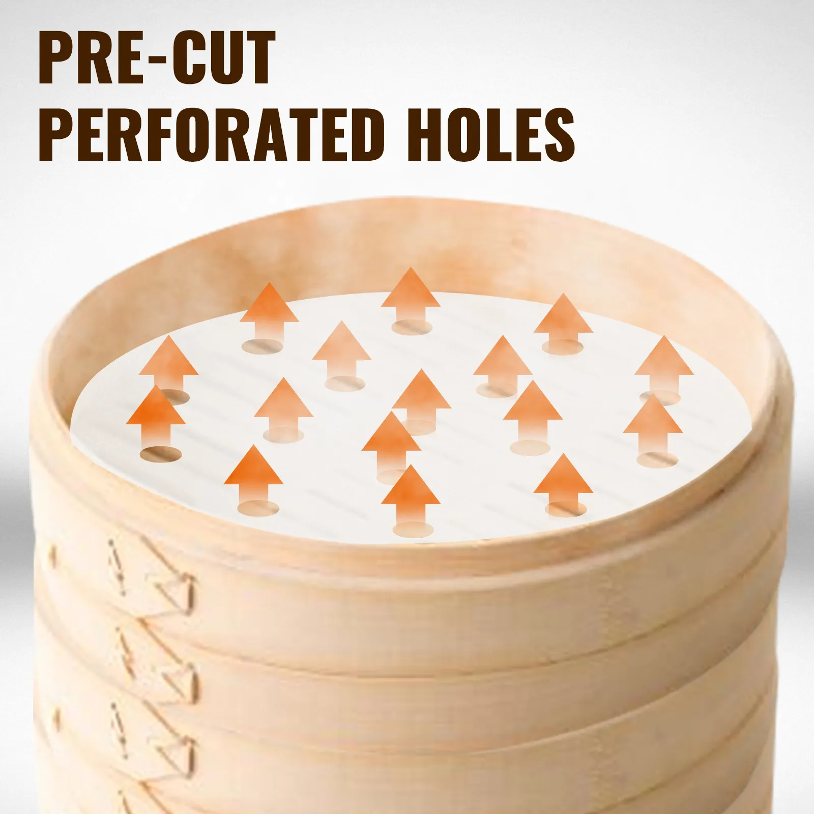 VEVOR's round parchment liner is literally a paper liner that protects the layered baskets from the mess and smells that could be retained by the bamboo material while still allowing steam to pass through and cook the food. Our premium paper liners make clean up easier and prolong the life of your cookware without worrying about the mess and odors left behind.
