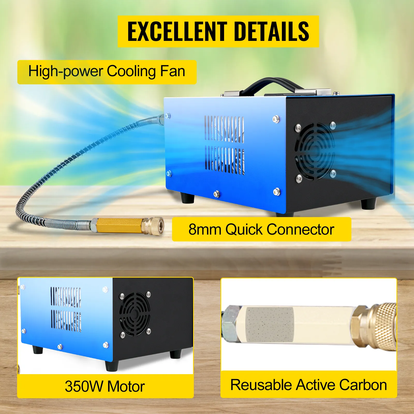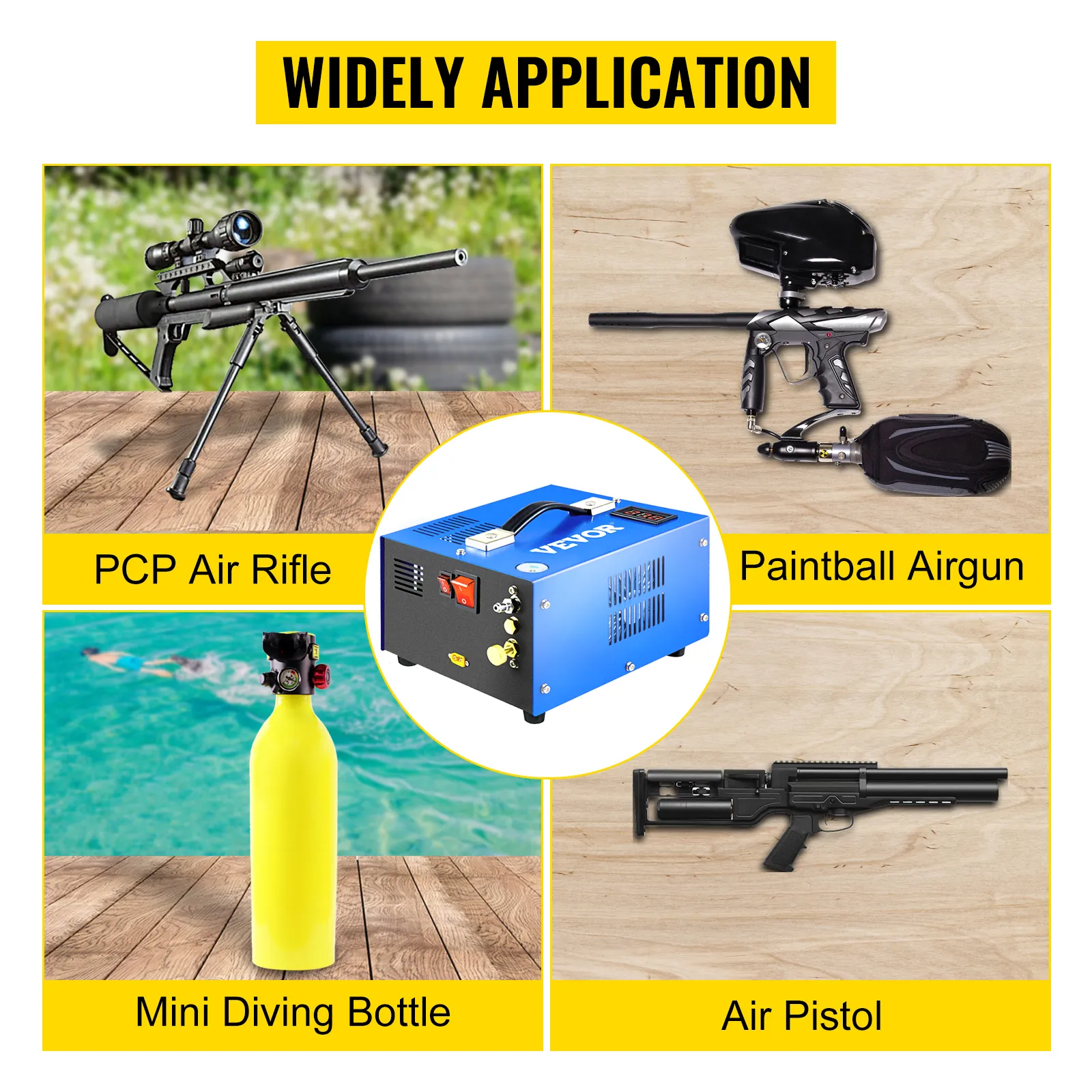 Our portable PCP air compressor is designed with secure devices: a bleed valve and a bursting disc, which make the compressor more secure. Perfectly suitable for PCP air rifle, paintball tank, mini diving bottle, etc.