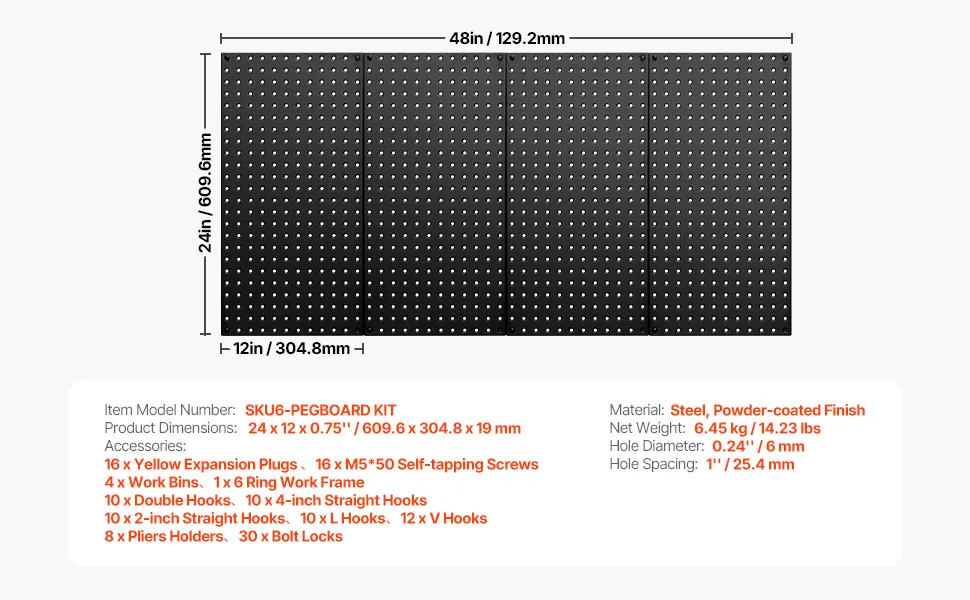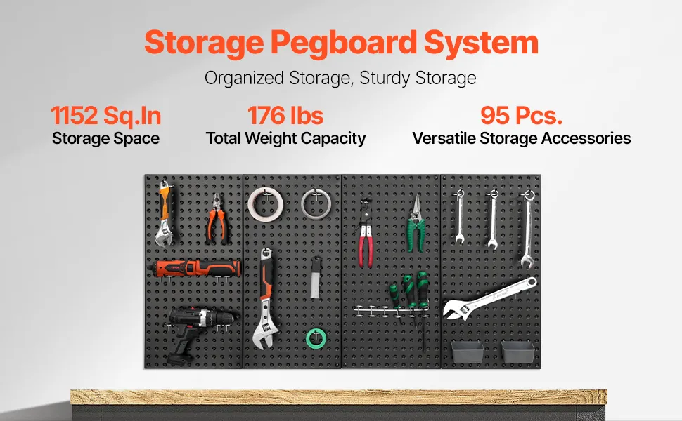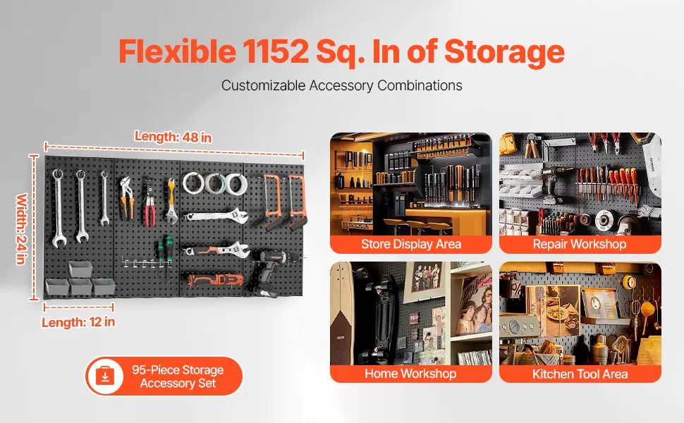 Organized Storage: With a large 1152 square-inch surface, this metal peg board provides ample space to hang and store all your tools. Customize your storage solution by combining various accessories to suit your specific needs.