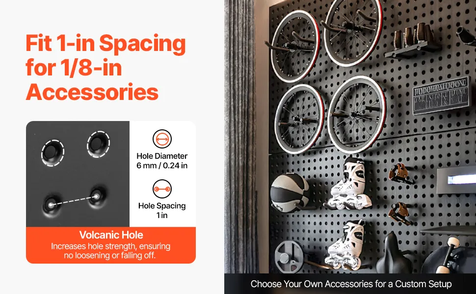 Hooks Stay in Place: This wall pegboard features an upgraded volcanic hole design. The standard round holes provide enhanced strength to prevent hooks from falling off or loosening during use—suitable for users who require higher safety standards.
