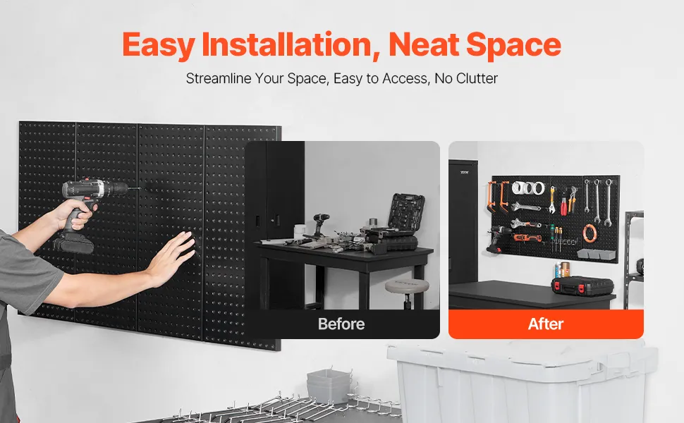 Easy Installation: Simply follow the instructions to mark the installation spots on the wall, drill holes, and insert nails/screws for secure attachment. Mount the pegboard wall organizer and accessories onto the nails, press firmly to set.