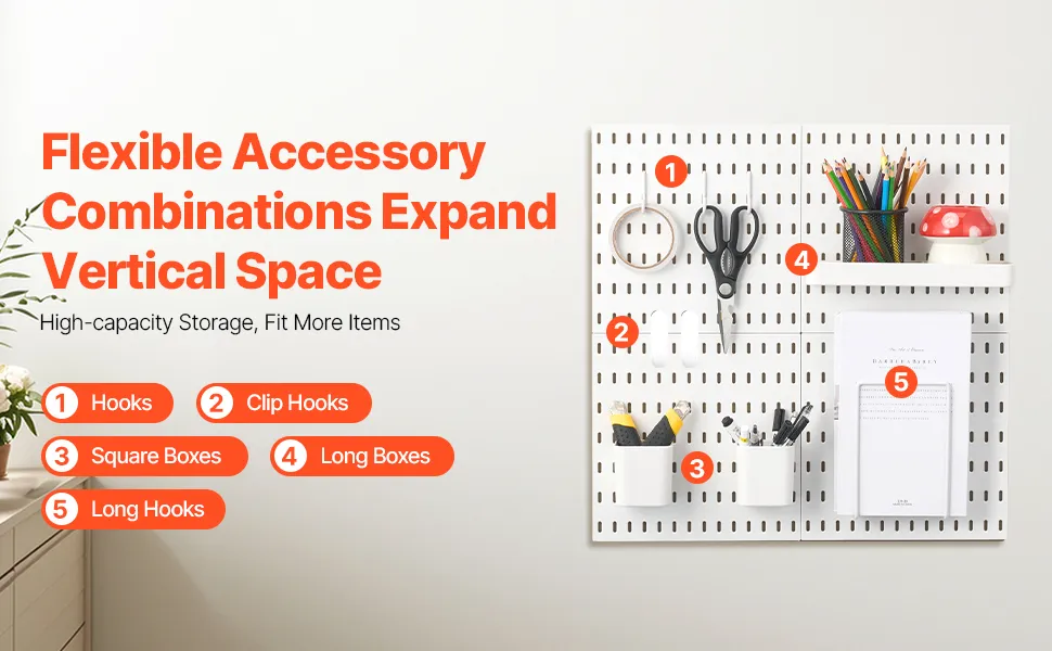 • Space Expansion: This office pegboard wall organizer set provides a wide range of accessory options, effectively maximizing space usage. You can mix and match components to expand your storage capacity, making your home feel more spacious.