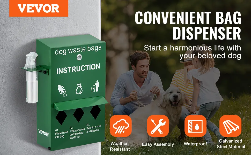This dog poop bag dispenser comes with 600 waste bags and is made from durable galvanized steel. It's ideal for pet-friendly places like parks, backyards, residential areas, and grooming salons, making it easier for pet owners to clean up after their furry friends!