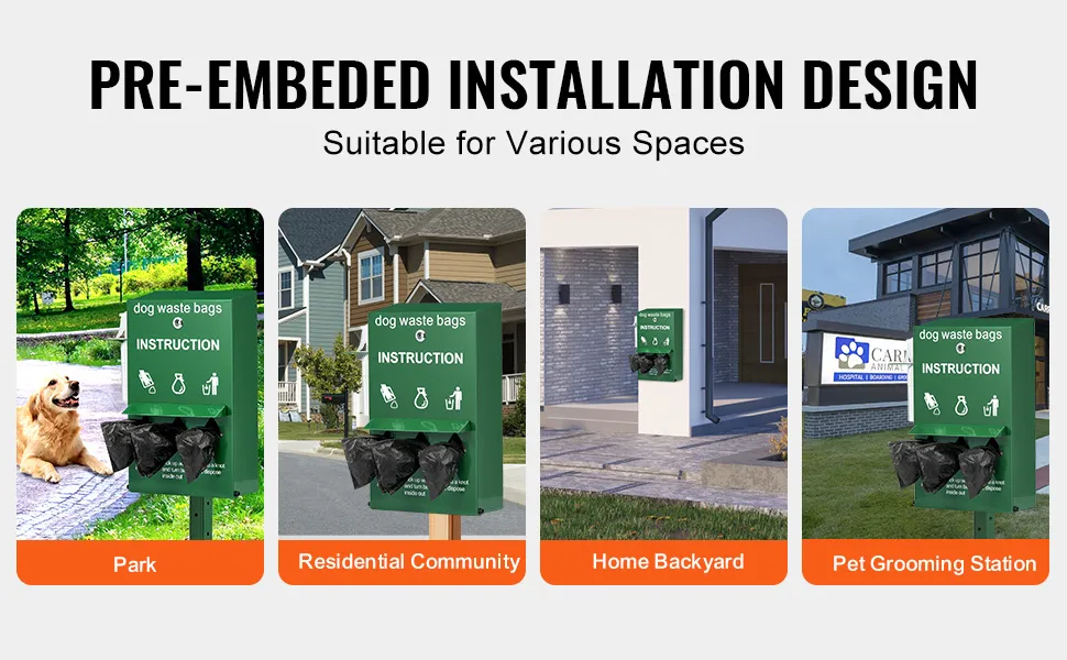 Easy Installation: Mount this dog bag dispenser on walls, poles, or wherever your pup’s adventures lead you. It’s ideal for both commercial and residential setups—because every neighborhood deserves a little canine convenience!