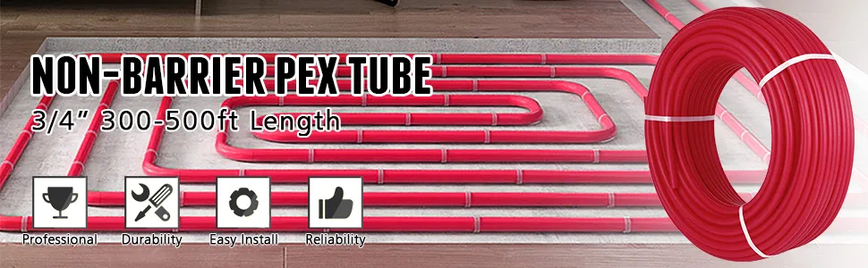 Non-barrier PEX tubing is used for residential and commercial hot & cold water plumbing applications. Can also be used for open loop radiant floor heating system to distribute water temperature between: -47℉ to 230℉. PEX pipe features 300FT length, 3/4" standard size, good pressure ratings etc. Easy to install and has good flexibility to suit different occasions.