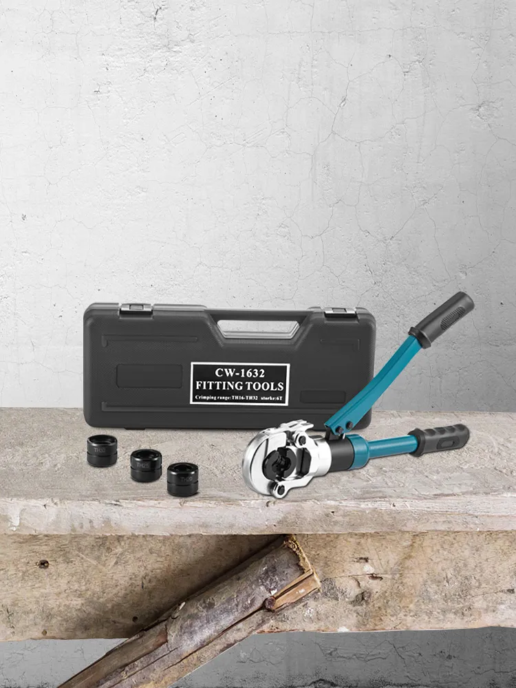 We offer you an 8-ton hydraulic crimper crimping plier, ultra-tough, versatile, trade grade hydraulic pressing tool. This professional hydraulic pump press plier is used for pressing copper or stainless steel with Viega or V-shaped contour fittings, suitable for 16 mm, 20 mm, 25 mm, and 32 mm pipes.