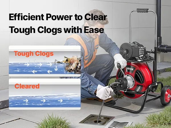 Are you tired of clogged drainage pipes, expensive plumbing services, and incomplete unclogging? Say bye to bad smells and troublesome maintenance. Let VEVOR electric drain cleaning machine with a 22m x 12.7mm solid core steel cable deliver fast, efficient pipe blockage clearing.