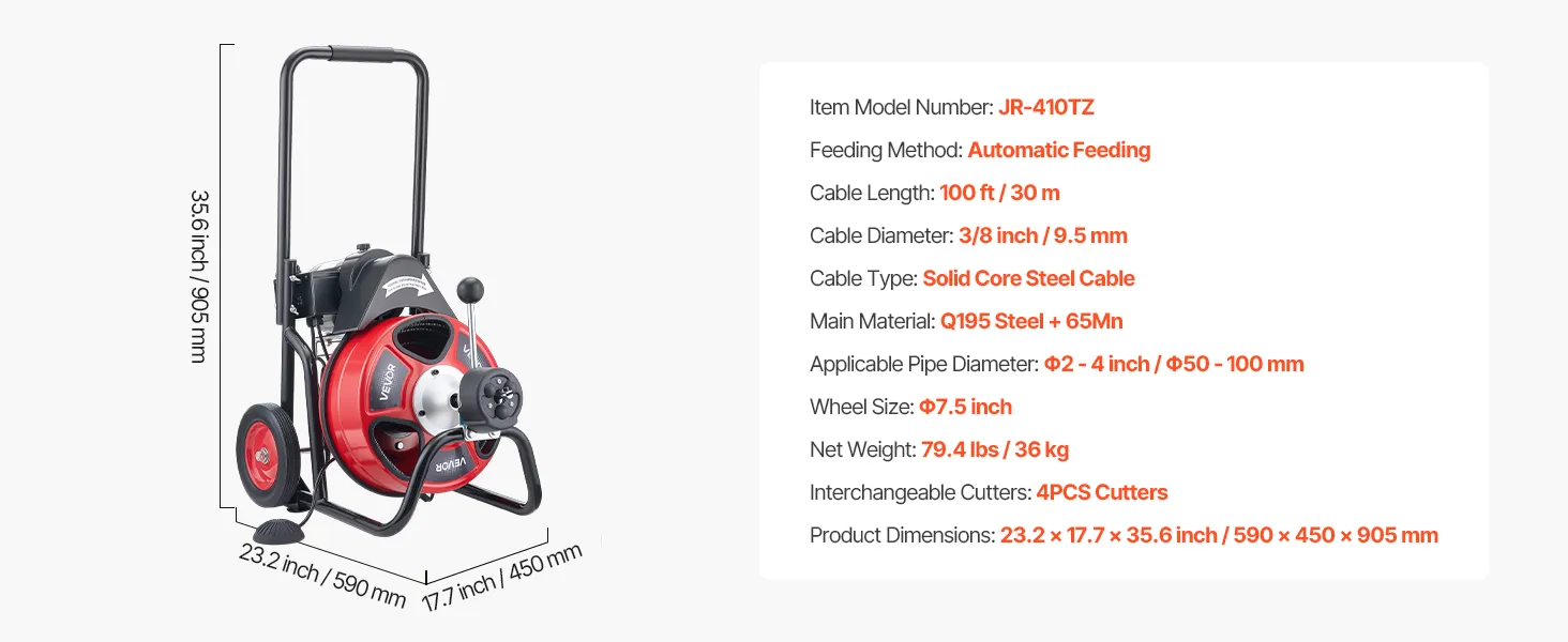 Are you tired of clogged drainage pipes, expensive plumbing services, and incomplete unclogging? Say goodbye to bad smells and troublesome maintenance! Let the VEVOR electric drain cleaning machine with 30m x 9.5mm solid steel cable delivers fast, efficient pipe blockage clearing.