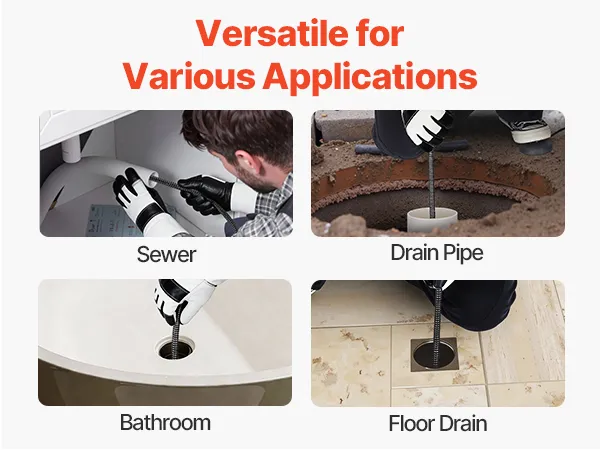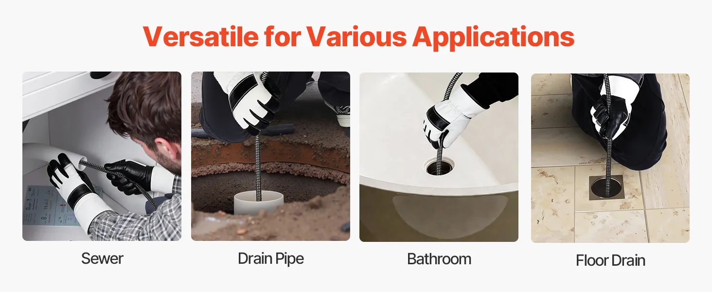Combining multiple enhanced features, this VEVOR sewer drain auger efficiently clears blockages in sewer plumbing, drain pipes, bathroom drains, and floor drains.