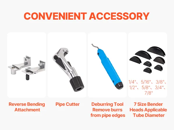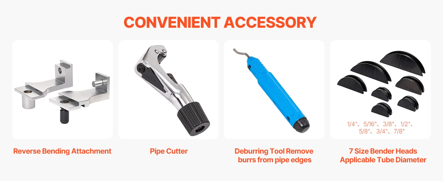 7 Bending Dies Included: Comes with 7 bending dies from 1/4 inch to 7/8 inch (6 to 22 mm). Our tube pipe bender tool allows you to handle multiple tubing sizes