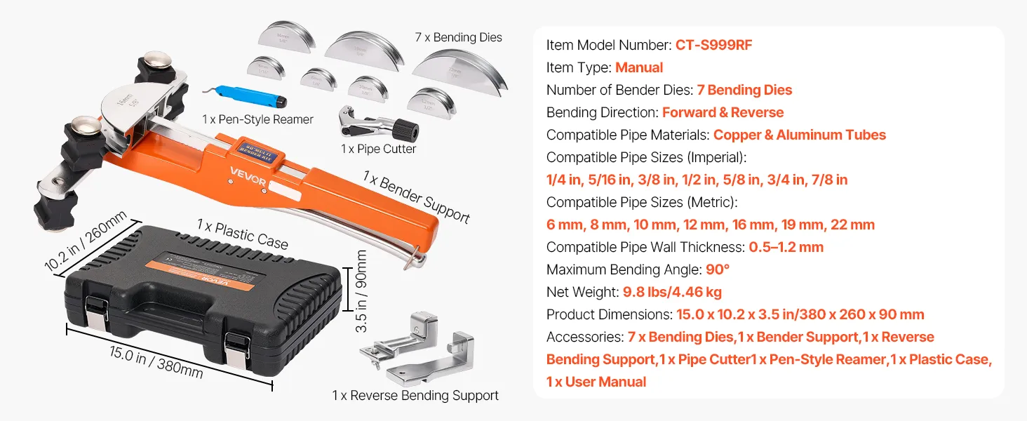 Precision Tube Bending: This ratcheting tubing bender kit delivers smooth, accurate bends on copper and aluminum tubing without deformation or wrinkling