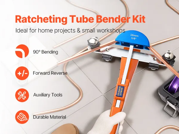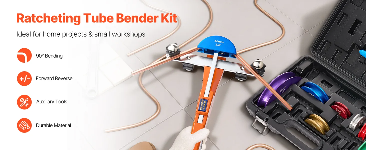 Precision Tube Bending: This ratcheting tubing bender kit delivers smooth, accurate bends on copper and aluminum tubing without deformation or wrinkling