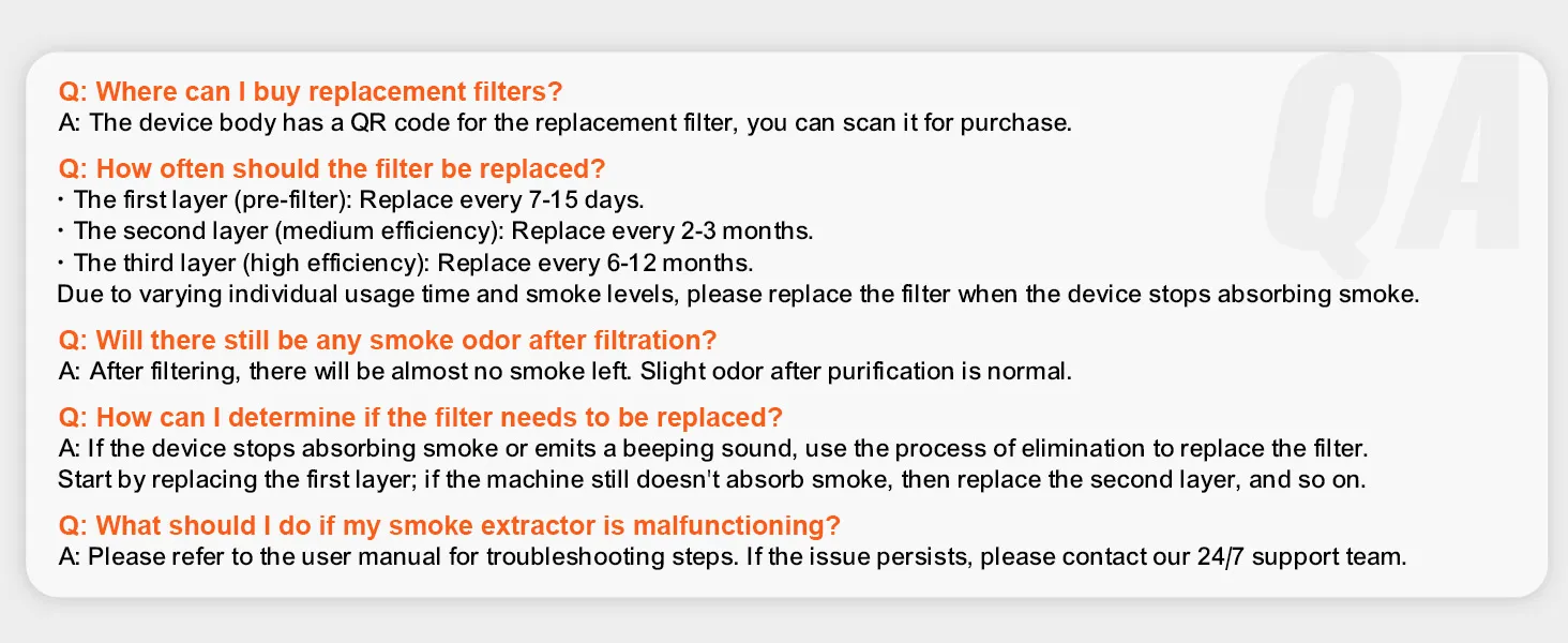 Our unique 3-layer filtration design can effectively capture 99.97% of harmful gases and mini impurities, purifying the air to meet environmental standards. The purification efficiency surpasses most fume extractors on the market, providing comprehensive protection for your health.