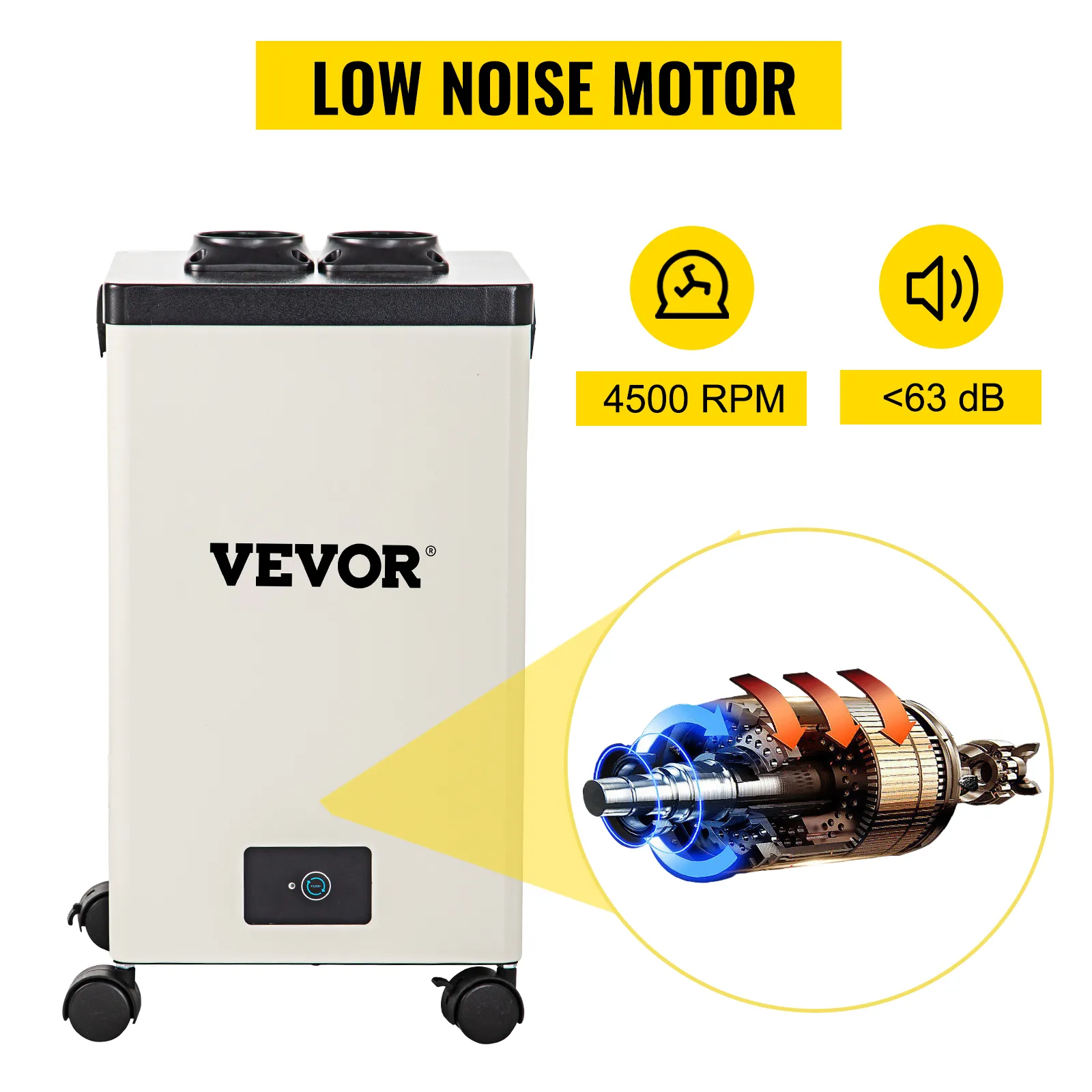 Boasting a 150W DC motor that can reach a max airflow speed of 280 m3/h, this welding fume extractor has a strong suction power while maintaining a noise below 63.