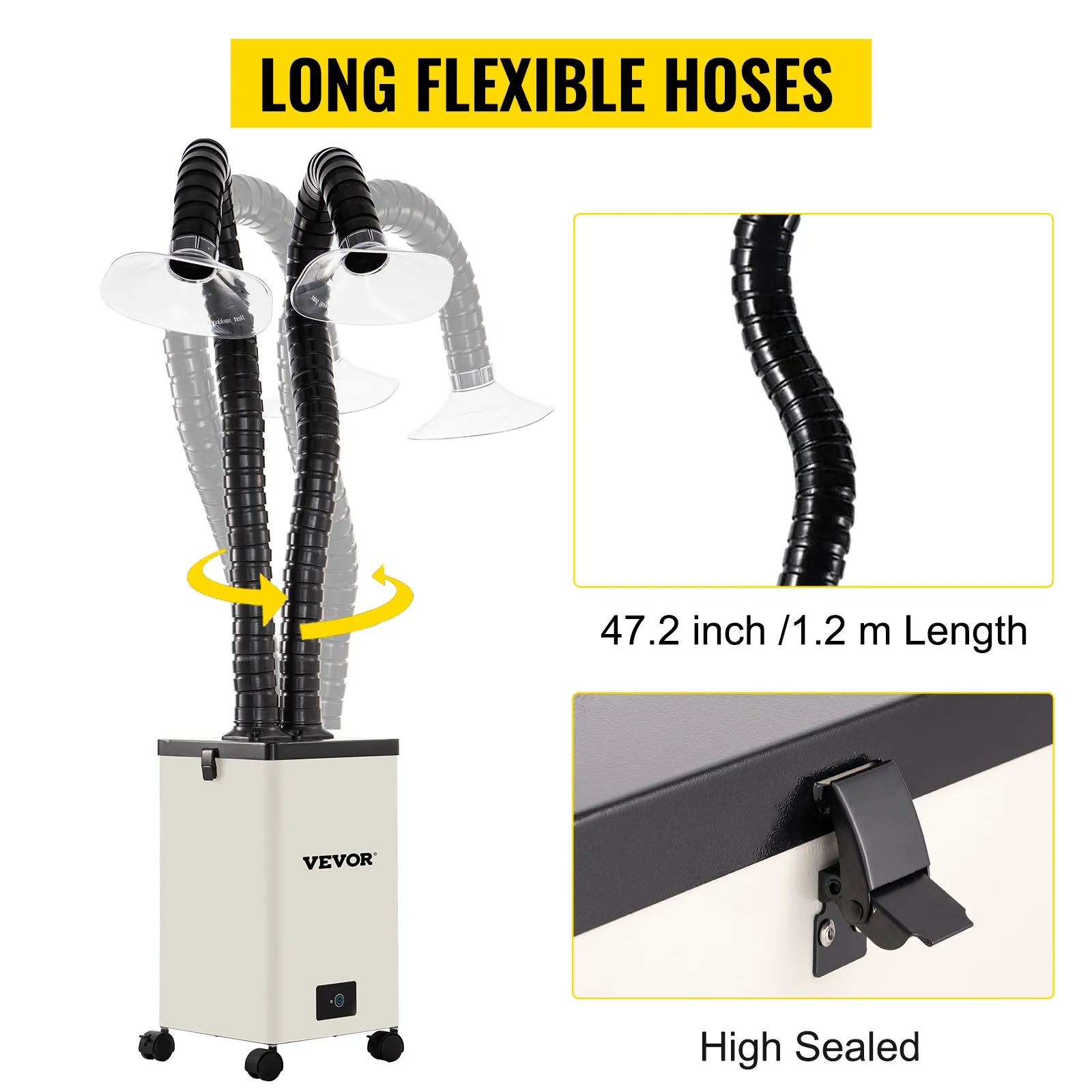 Our smoke extractor comes with two 1.2 m (47.2inch) 360° extractor tubes, which can easily stretch, bend and rotate to the angle you need.