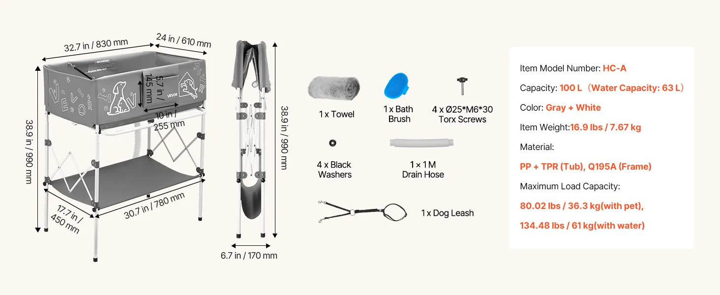 This elevated, foldable pet bathtub raises your pet to a comfortable working height, helping reduce bending and squatting. Designed to ease everyday strain on your back and knees during grooming.