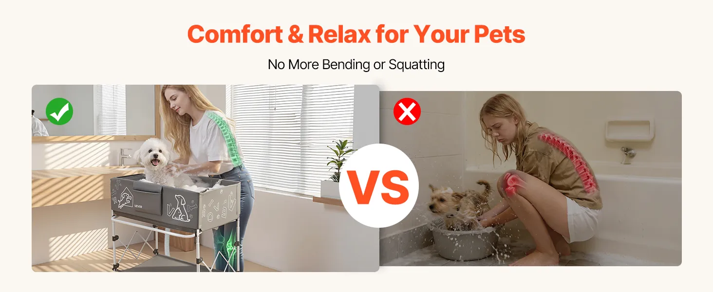 Cleaner Baths & Less Strain: This elevated pet bathtub allows you to bathe your pet while standing, helping reduce strain on your back, knees, and joints. It limits splashing and excess movement for a cleaner, more controlled bath time