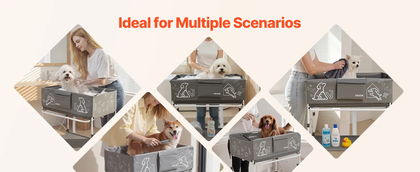 Foldable & Multi-Use: Our dog tub folds flat for space-saving storage—ideal for small homes or travel. Lightweight yet stable, it supports bathing, drying, brushing, trimming, toy cleaning, or outdoor grooming—all in one versatile solution