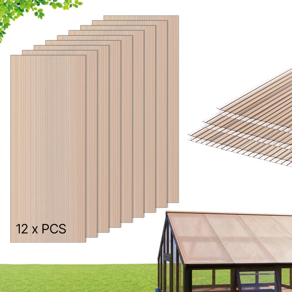VEVOR Roof Panels, 12Pcs Polycarbonate Roofing Panels Double Layer, High Impact Corrugated Plastic Greenhouse Replacement Cover, Waterproof for Gazebos, Chicken Coops, Home, Garden (1520 x 610 x 6 mm)
