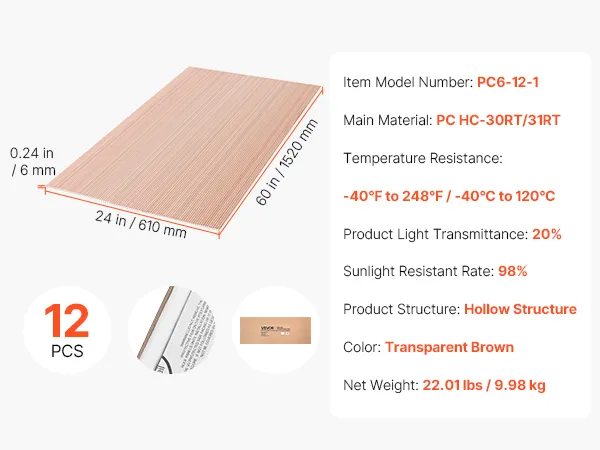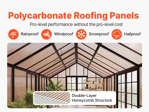 These greenhouse roof panels provide 20% soft light while helping resist up to 98% of sunlight. The hollow structure insulates heat and reduces noise.