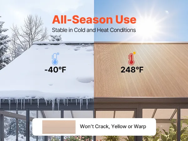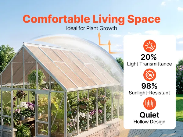 • Smart Light & Heat Control: These greenhouse roof panels allow approximately 20% light transmission while helping block up to 98% of sunlight. The double-wall design provides thermal insulation and helps reduce noise