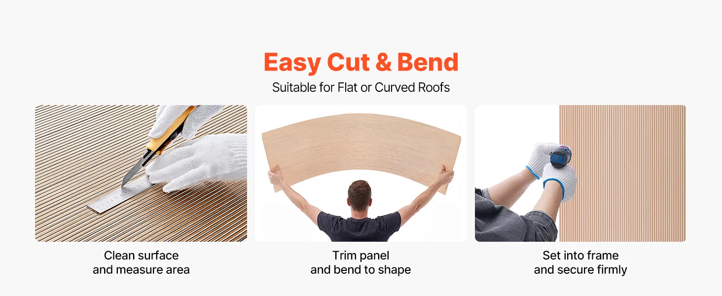 Lightweight roofing materials, easy to trim and cold-bend for arched roofs. Simple for one-person installation.