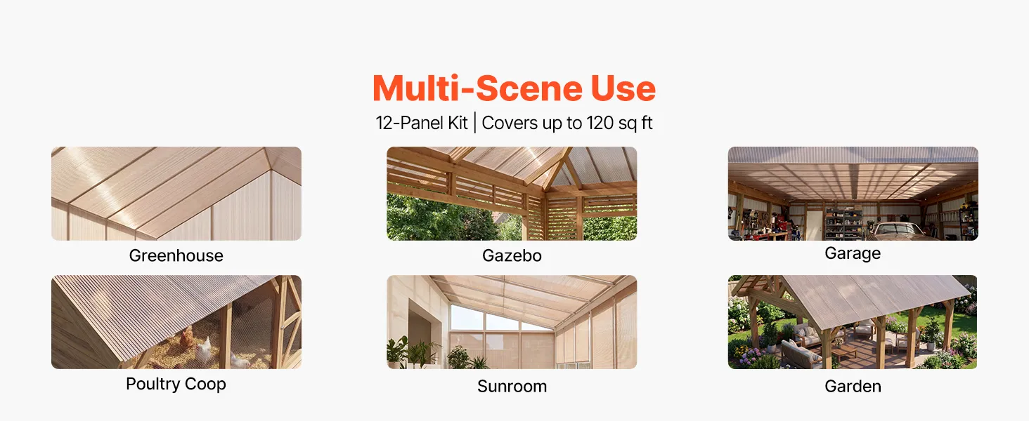 • Versatile Applications: Ideal as a pergola roof, as well as for greenhouses, sunrooms, gazebos, patios, chicken coops, wind barriers, and aquarium covers. A practical choice for home, garden, and farm use