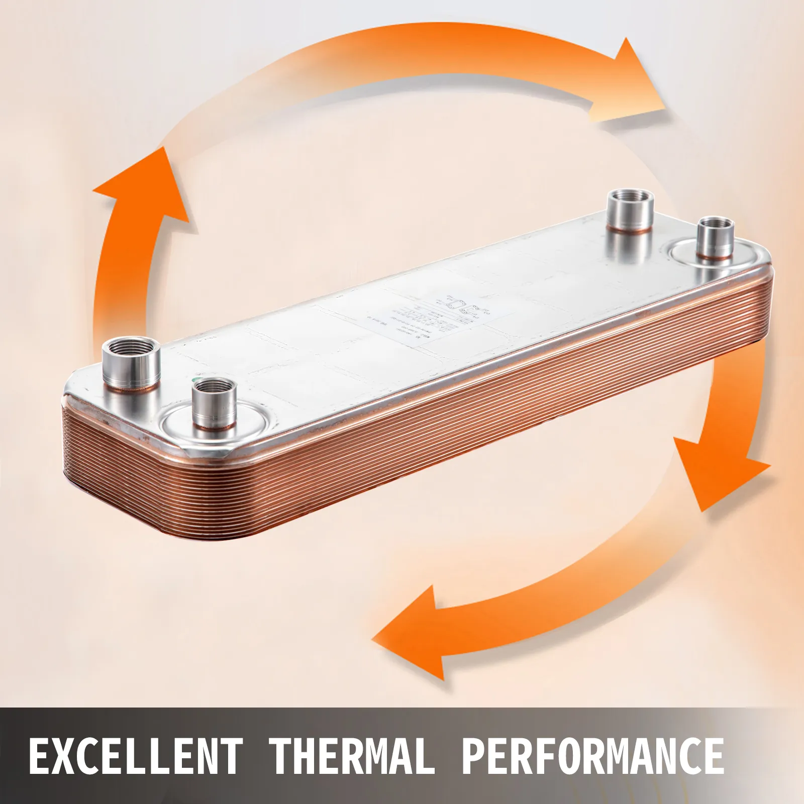 Our brand new heat exchanger features a compact & lightweight body, offering excellent thermal performance, and 316L stainless steel+99.9% copper material can ensure its long life, so it is perfect for Solar heating, Oil unit heat recovery Engine cooling, evaporation and condensing, etc.