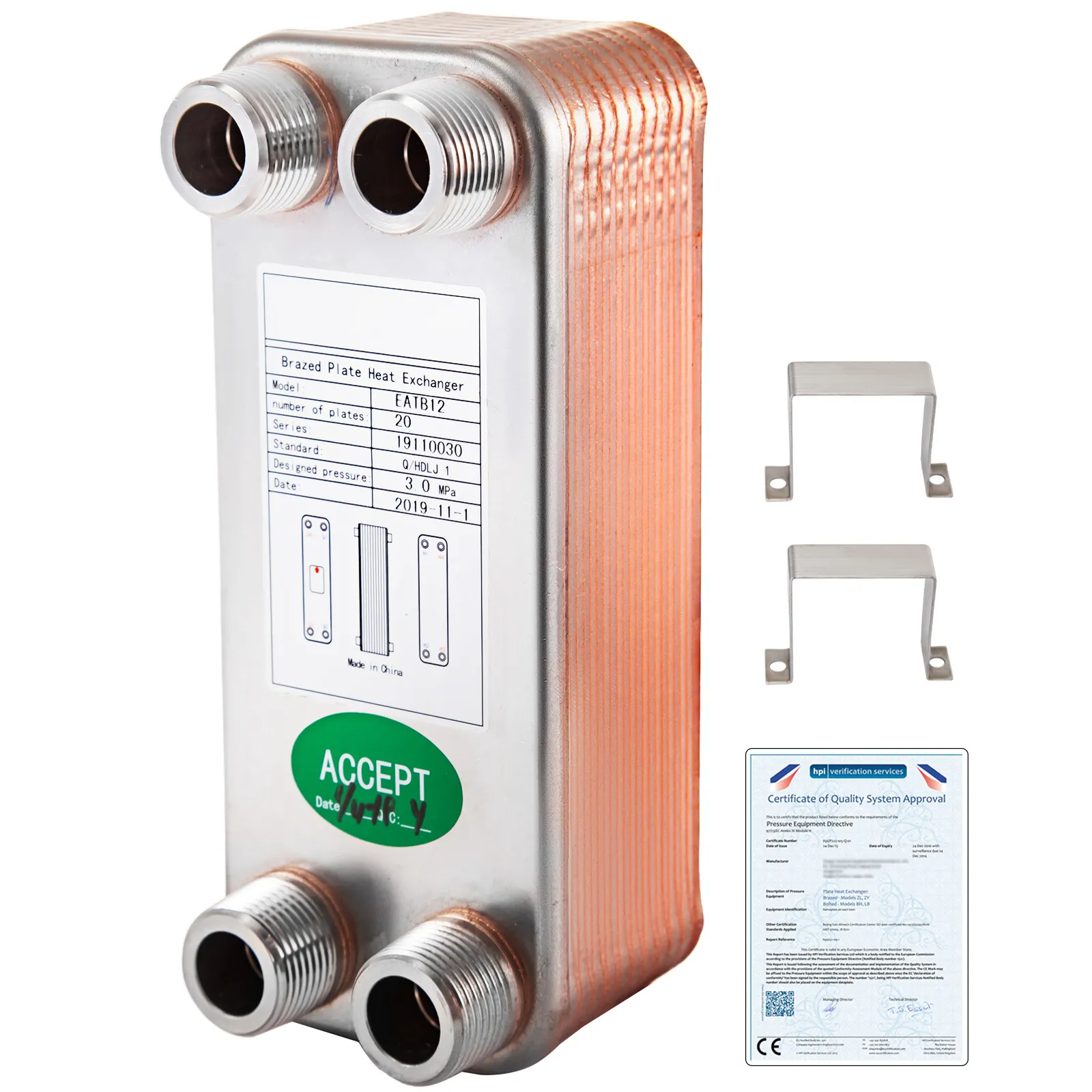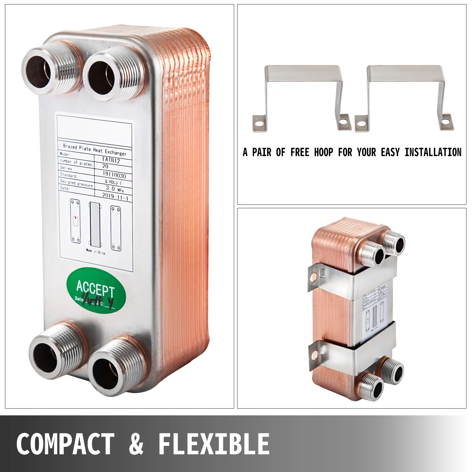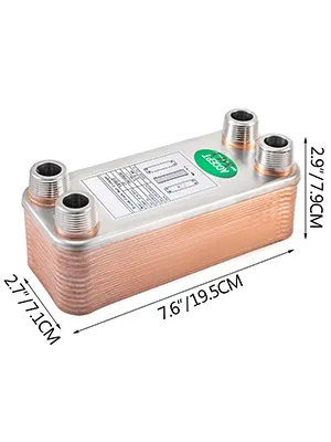 Our brand new heat exchanger features a compact & lightweight body, offering excellent thermal performance, and 316L stainless steel +99.9% copper material can ensure its long life, so it is perfect for Solar heating, Oil unit heat recovery Engine cooling, evaporation and condensing, etc.