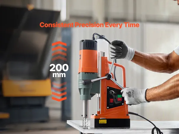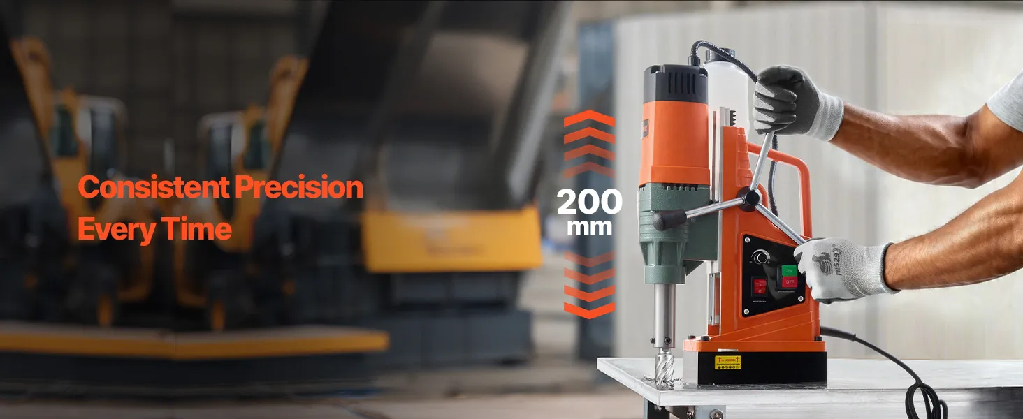 Understand the Power: With 2922 lbf / 13,000 N of holding force, this mag drill features a high-purity iron core for secure, stable operation at various angles. The 10-speed settings enable precise and efficient drilling for different hole diameters