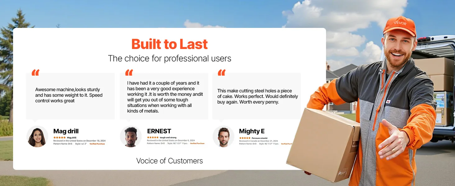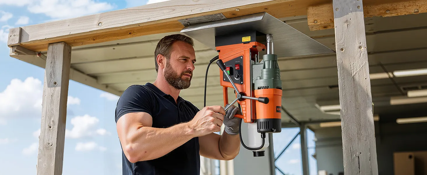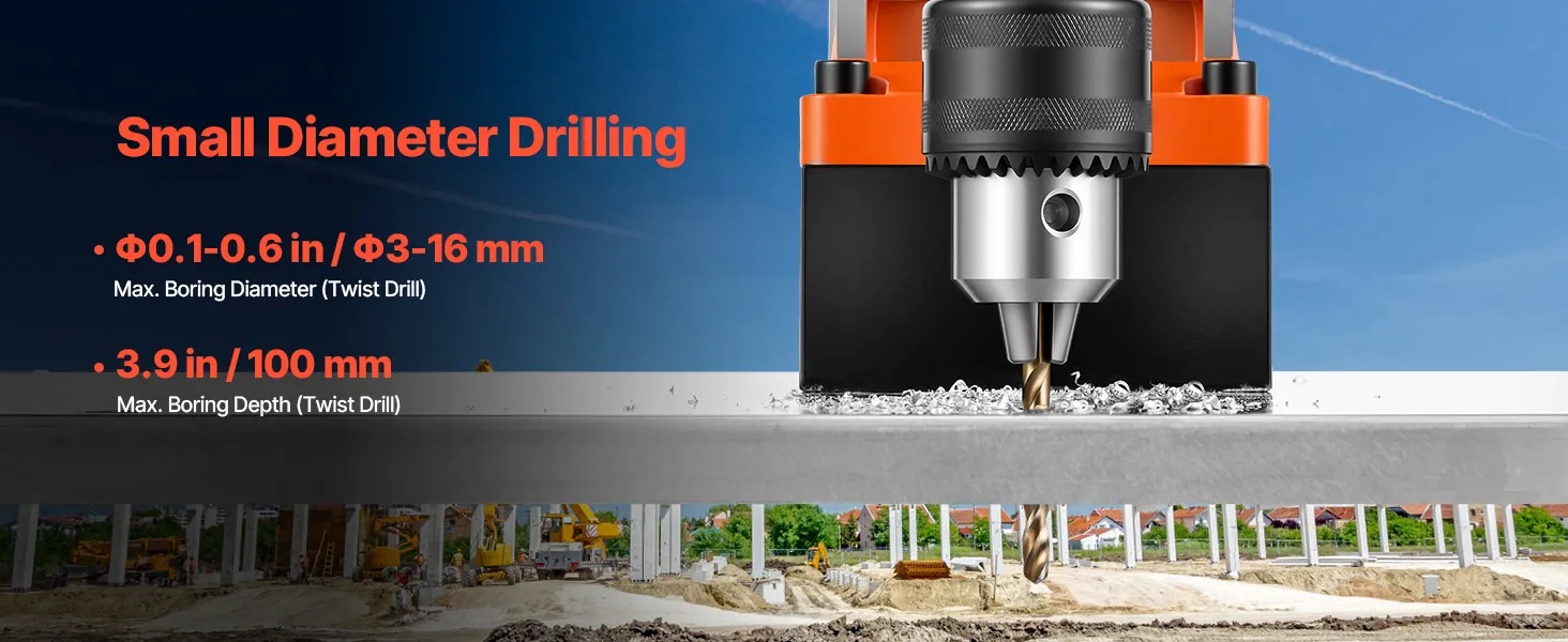 Wide Applications: This mag base drill is ideal for home improvement, equipment installation, steel fabrication, shipbuilding, bridges, railways, and power plants. Note: Use on steel plates ≥0.39 in / 10 mm. Not suitable for stainless steel or cast iron. Use a security rope for inverted or horizontal drilling