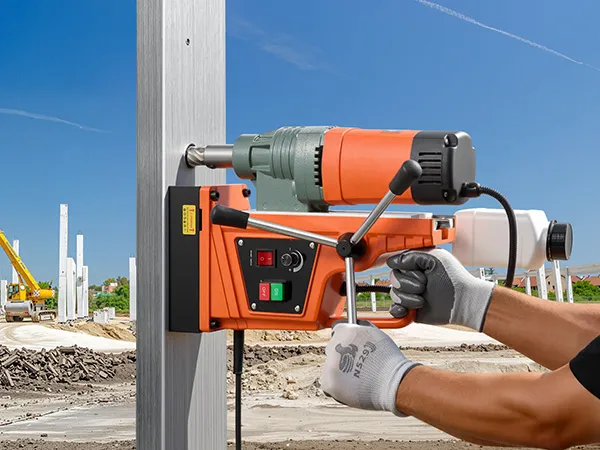 A: The magnetic drill can bore on steel and iron structures above a 0.4"/10 mm thickness by upright, inverted, and horizontal adsorption. Drilling bits with a diameter of less than 2"/50 mm are applied.