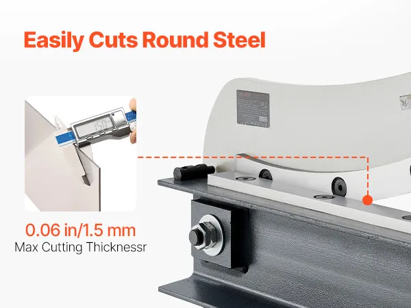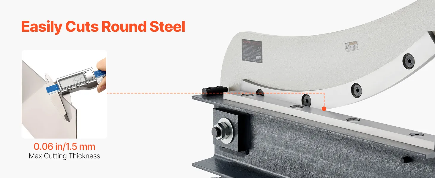 More than just a sheet metal cutter. This sheet metal plate shear features a specially designed round hole blade that allows you to cut through rebar and other round stock with ease. With a maximum cutting diameter of 0.06 in/1.5 mm, it's a versatile tool for both workshop and job-site use.