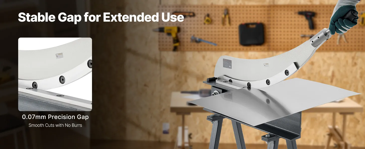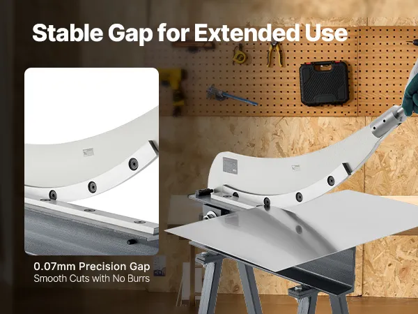 Exact Blade Gap Control: With a precision gap of <0.07 mm, this metal shear easily passes paper test, ensuring ideal blade alignment and reducing burrs. Its upgraded reamed-hole screws maintain tight tolerances over time, ensuring long-term accuracy
