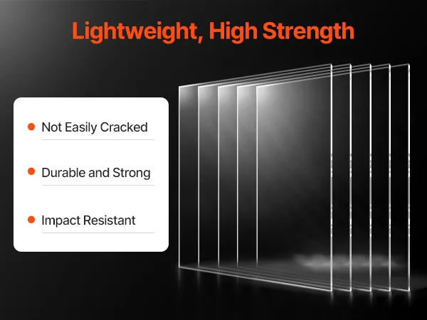 Higher Strength, Lighter Weight: Crafted from premium PET material, our thin PET sheets feature a smooth, clear surface with exceptional strength and impact resistance, making them tough to shatter. The 1 mm thickness and outstanding flexibility allow easy bending into desired shapes. Each sheet weighs only 0.74 kg, significantly lighter than glass of the same size, ensuring easy transportation and non-hassle assembly