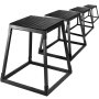 VEVOR plyometric jump box set in different heights with sturdy black metal frames.