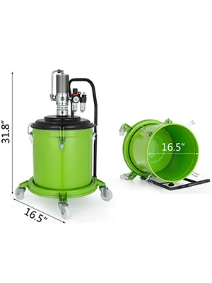 The grease pump is driven by compressed air. Our air operated grease pump features safety and reliability, low energy consumption, accurate working pressure, simple operation, and high efficiency. It is a must-have tool for lubrication in workshop, garage, plant, or building market. With an inverted U-shape handle and two rolling wheels, this pneumatic grease pump is easy to handle and transport.