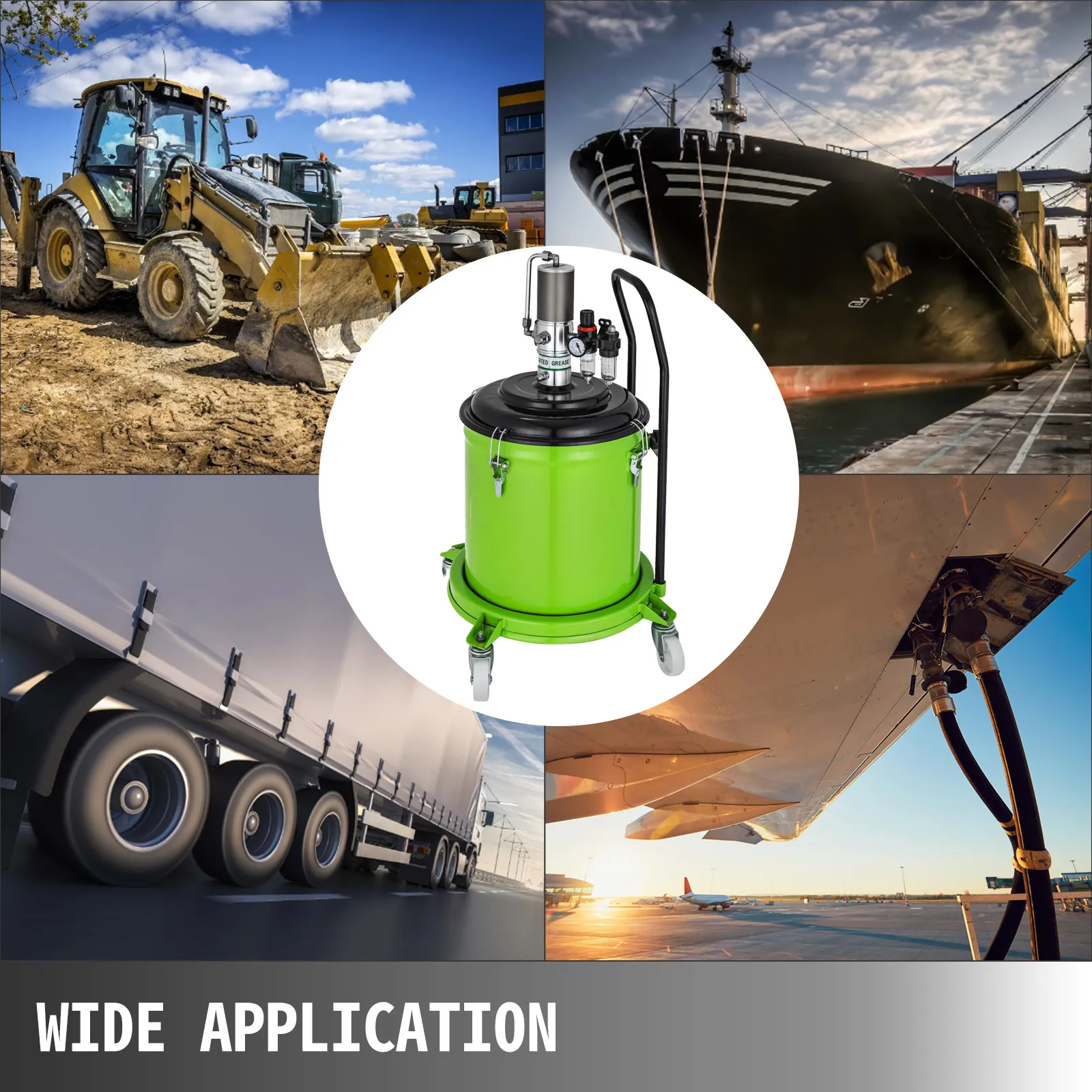 30L/7.5 gallon grease bucket, made of high-quality alloy, has high hardness, good toughness, sturdiness & durability. Rubber seal piston isolates pollution and keeps the oil clean.