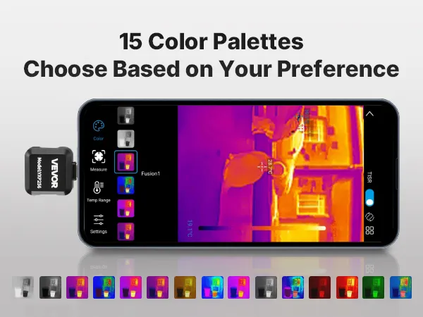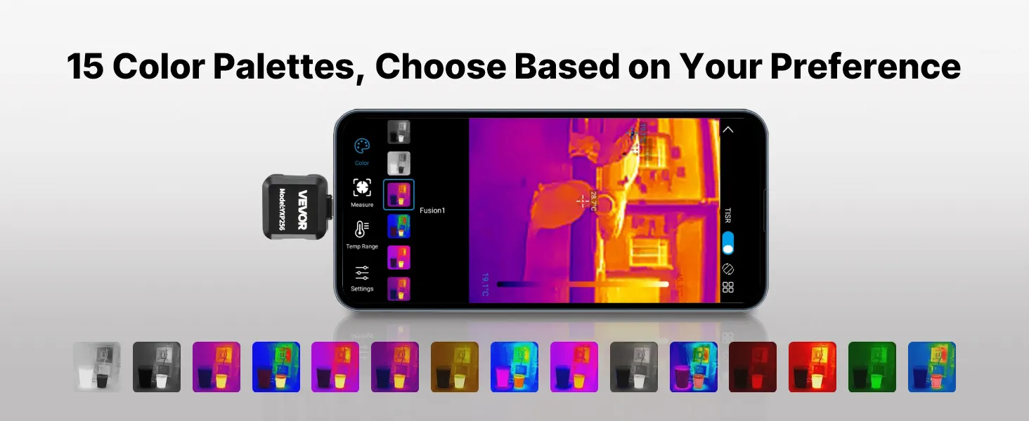 Choose from 15 color palettes to display thermal images based on your preference, making temperature differences clearer and helping you identify hot and cold spots more easily.