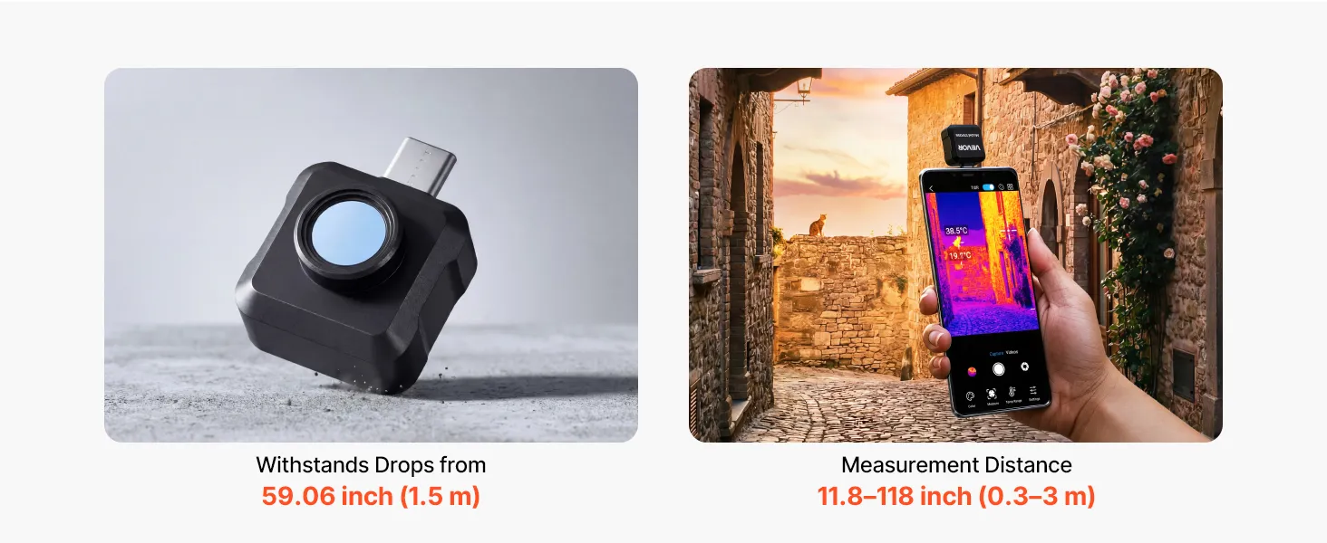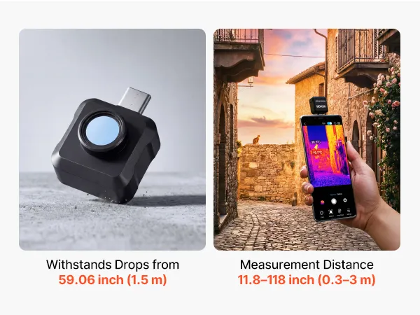 Compatible with Android systems: Equipped with a Type-C port, compatible with Android 8 and above phones and tablets. Simply scan the QR code and download the app, and you can transform your devices into an multi-purpose thermal imaging camera. Pocket-sized, portable, plug and play