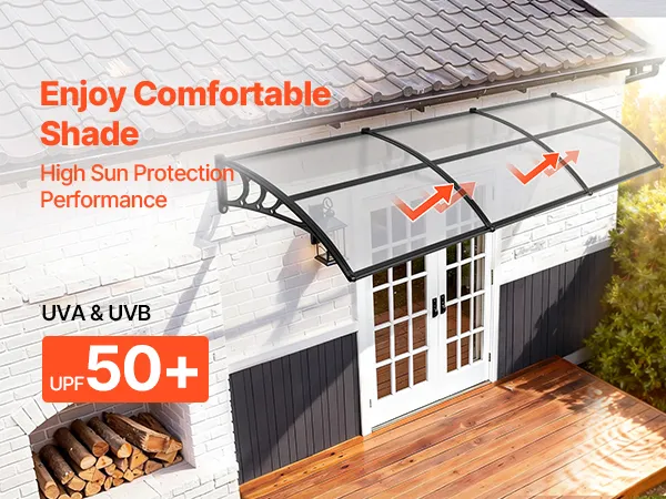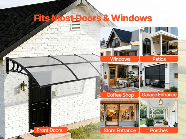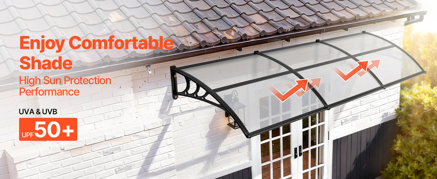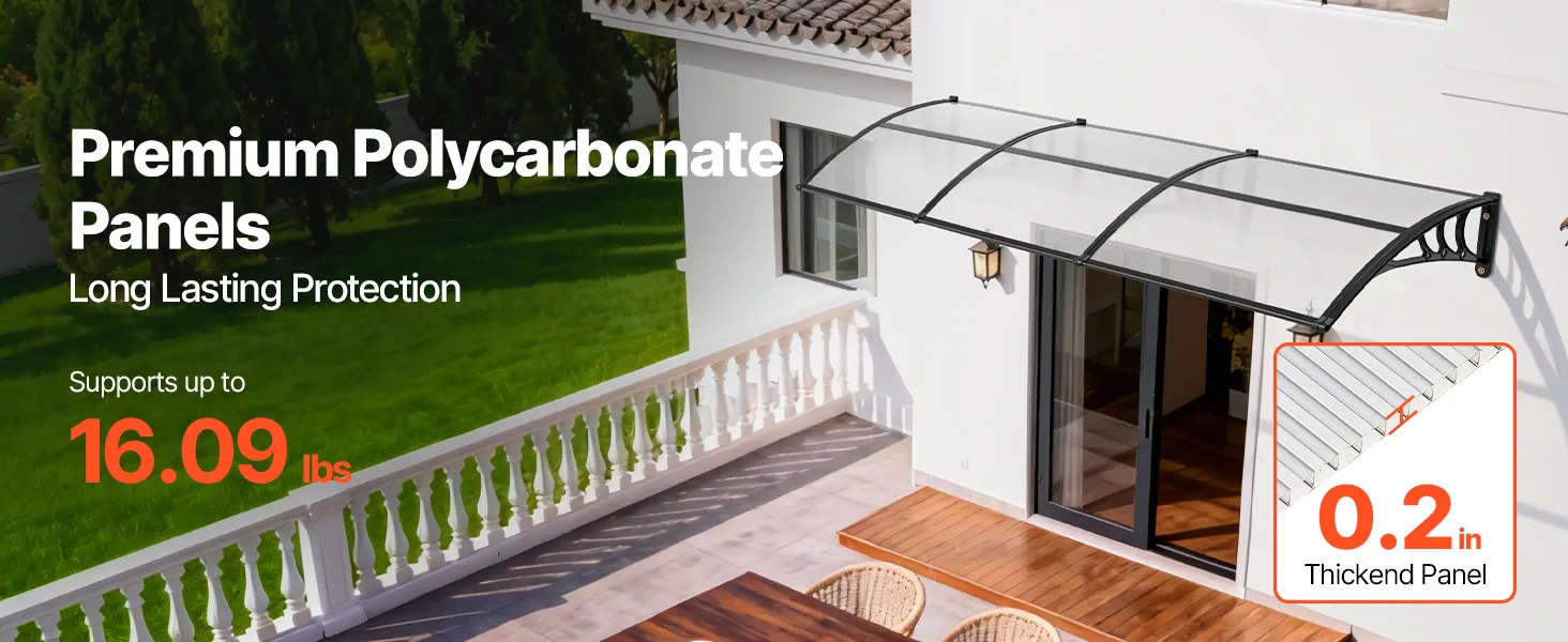 Strong & Durable Construction: Made with high-transparency polycarbonate panels & reinforced ABS brackets, this awning for door entrance offers excellent load bearing. It's shock-resistant, flame-retardant, noise-reducing, and adds a clean, modern look to your exterior