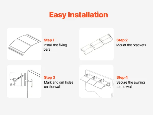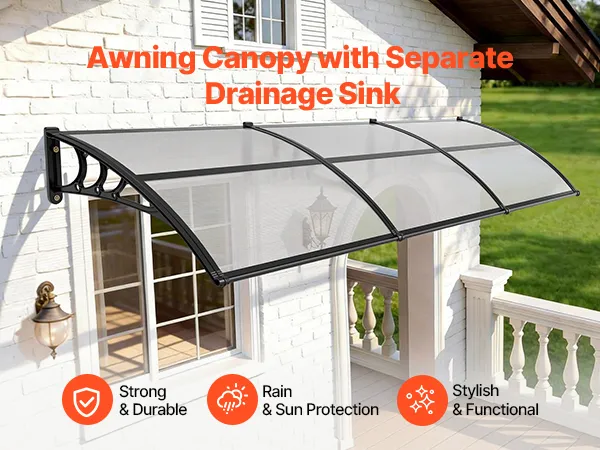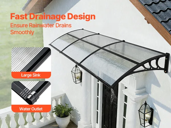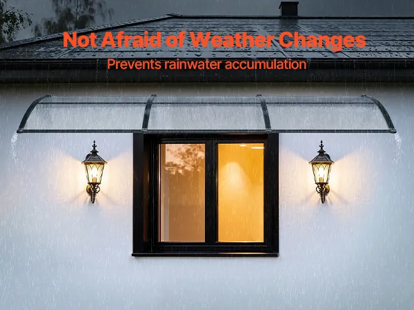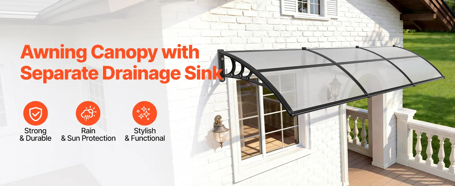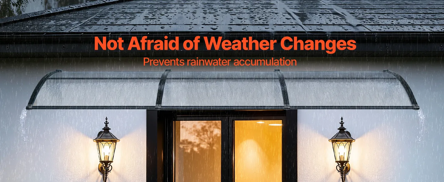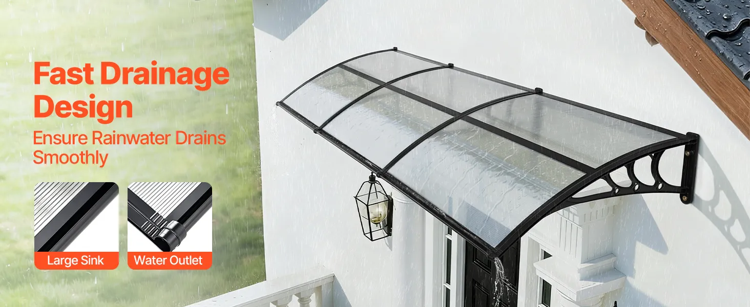 Efficient Drainage Design: Designed with an upgraded directional drainage sink, this polycarbonate door awning quickly guides rainwater away from your entrance. From light drizzles to heavy downpours, it keeps your doorway clean, dry, and slip-free