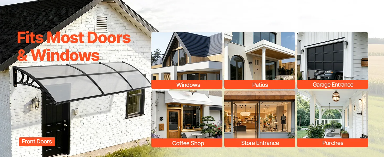 Versatile Applications: Ideal for front doors, windows, balconies, and porches, this exterior door awnings suits homes, coffee shops, and retail storefronts alike. Securely packaged for secure delivery and backed by responsive customer support