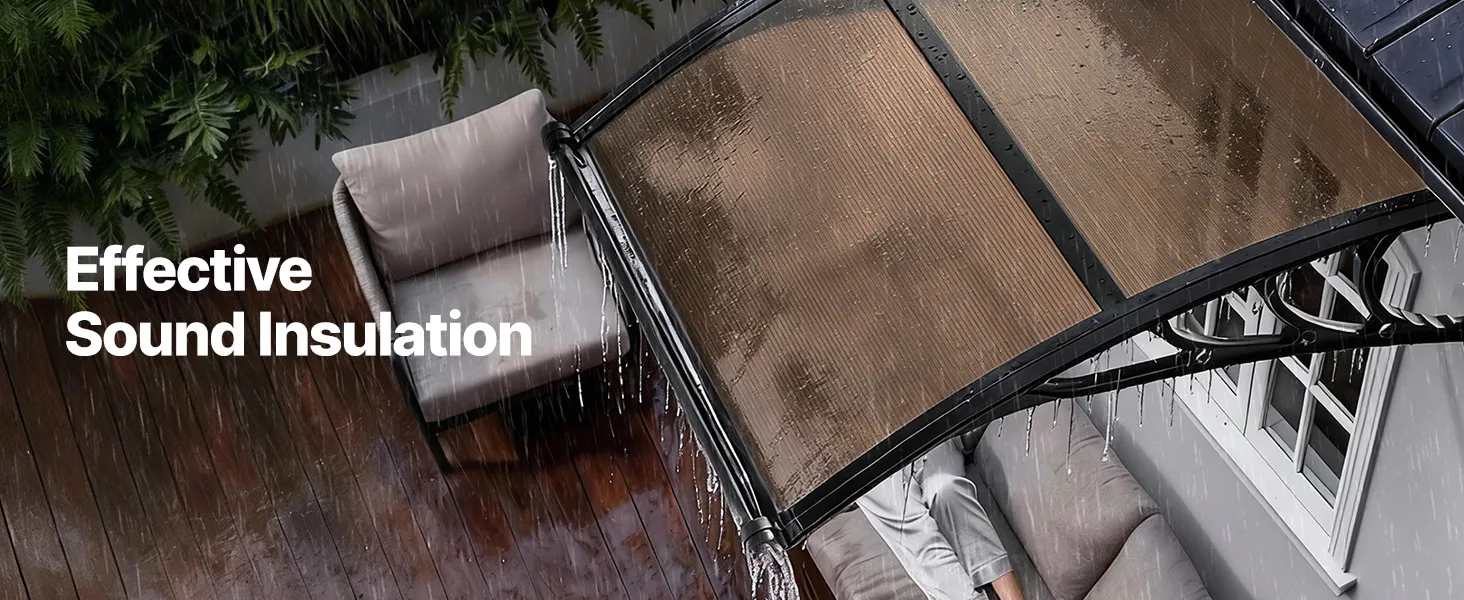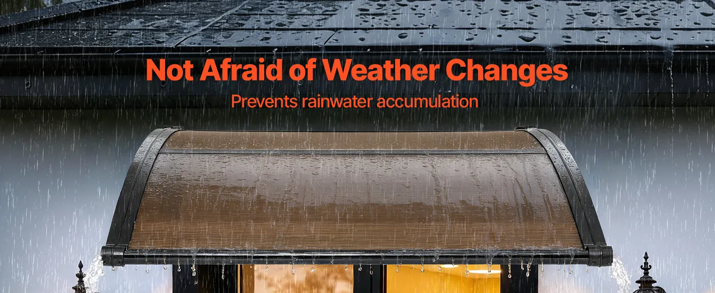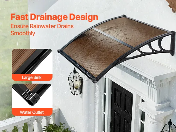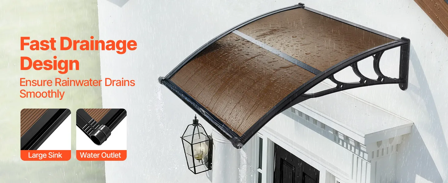 Efficient Drainage Design: Designed with an upgraded directional drainage sink, this polycarbonate door awning quickly guides rainwater away from your entrance. From light drizzles to heavy downpours, it keeps your doorway clean, dry, and slip-free