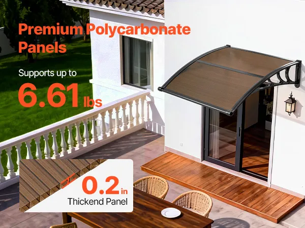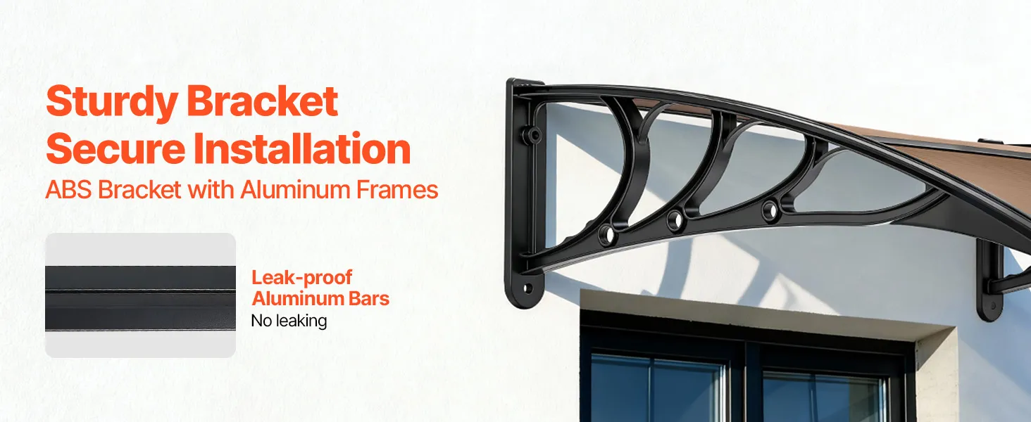 Strong & Durable Construction: Made with high-transparency polycarbonate panels & reinforced ABS brackets, this awning for door entrance offers excellent load bearing. It's shock-resistant, flame-retardant, noise-reducing, and adds a clean, modern look to your exterior